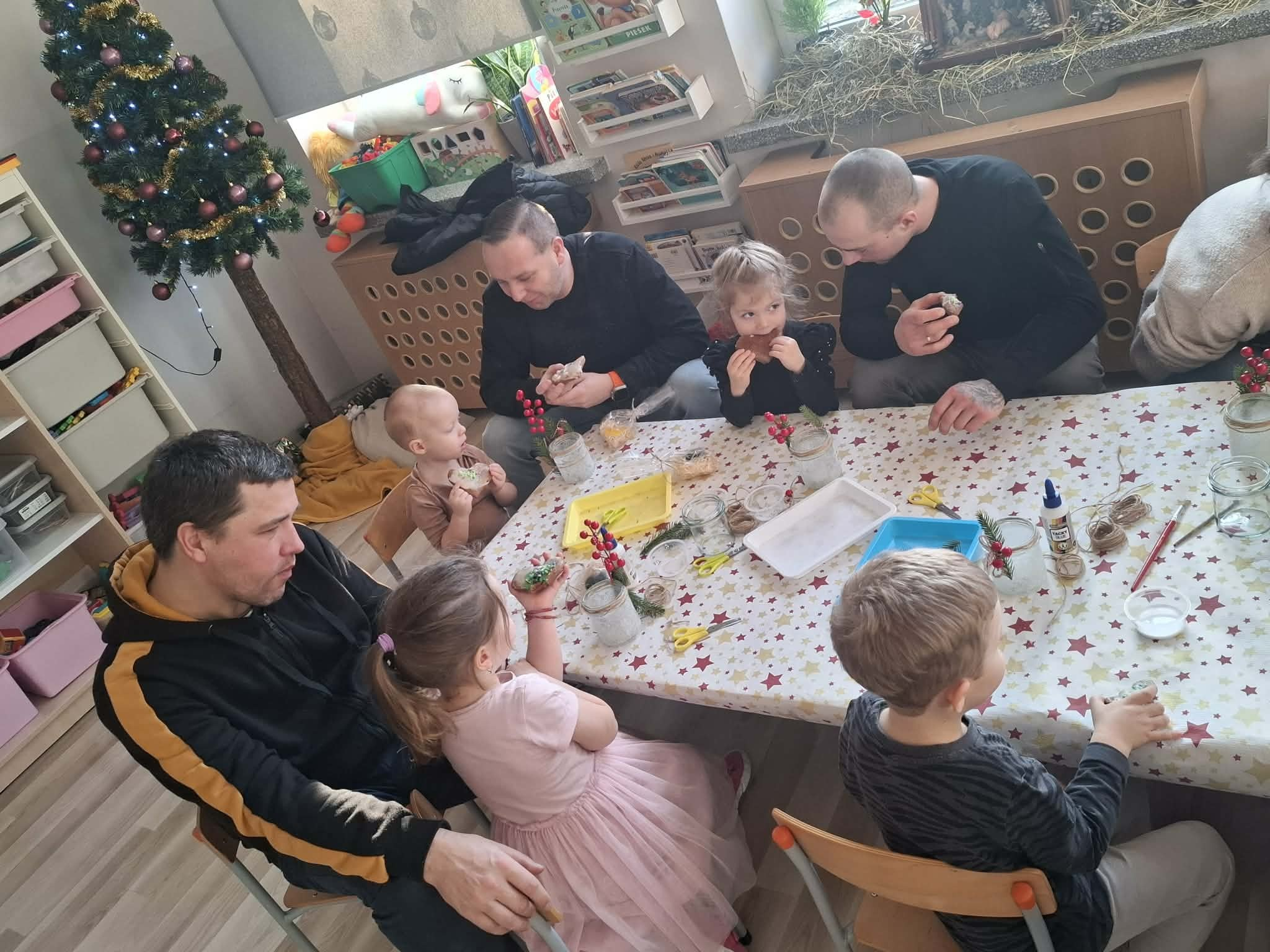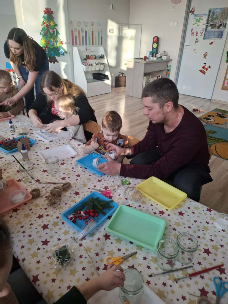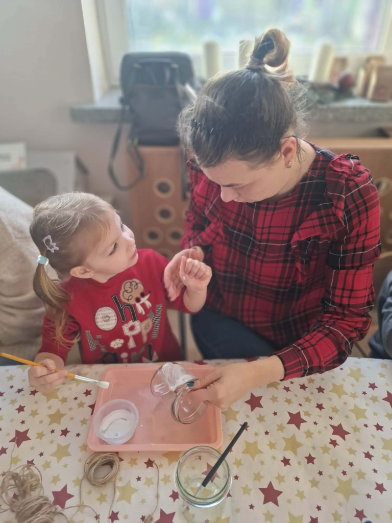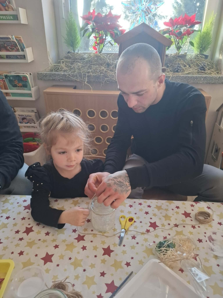 W czwartek u Maluszków odbyły się warsztaty bożonarodzeniowe 🎄.Dzieci zaśpiewały piosenkę, powiedziały wierszyk oraz wspólnie z rodzicami wykonały lampion bożonarodzeniowy🕯️.Przygotowały także dla rodziców niespodziankę – pierniczki🍪oraz mydełka🧼🫧.