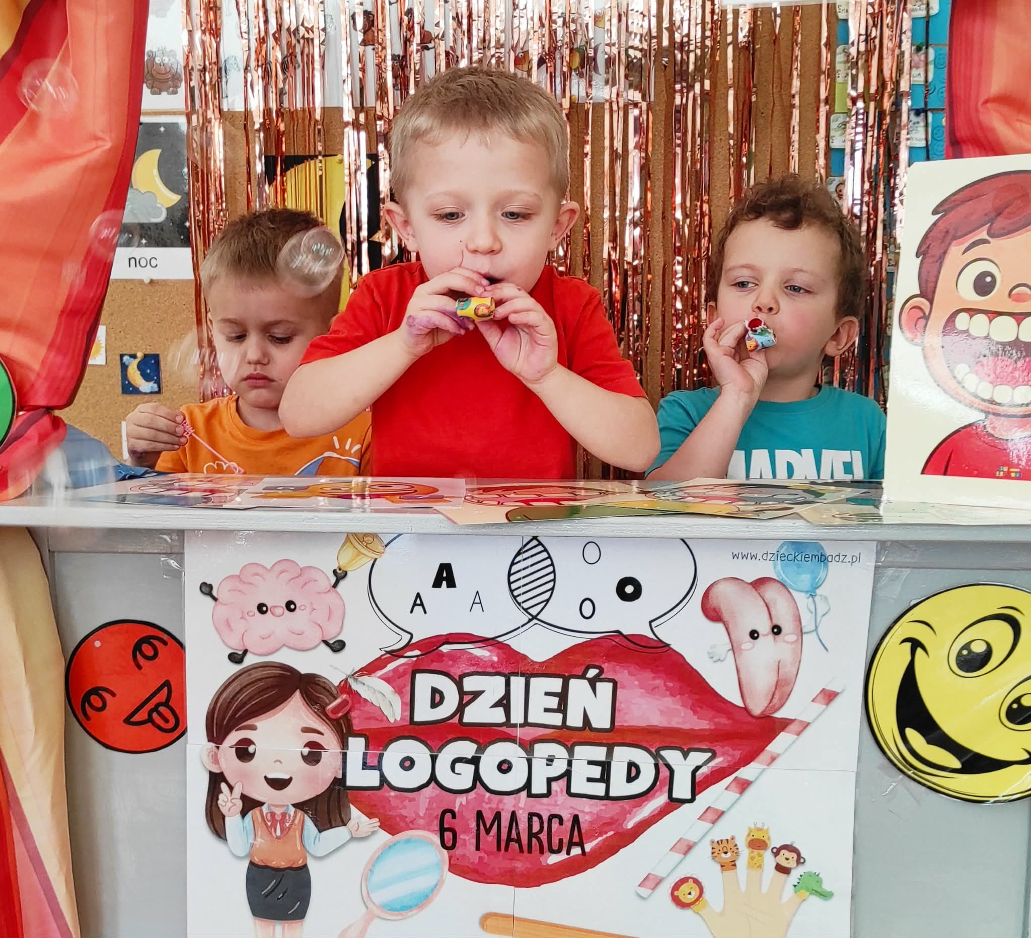 Z okazji Międzynarodowego Dnia Logopedy, 4 Marca nasze przedszkole zamieniło się w najbardziej radosne miejsce na mapie – prawdziwą Krainę Śmiesznych Minek! To nie było zwykłe spotkanie, ale magiczna wyprawa, w którą wyruszyły dzieci Nasza podróż zaczęła się wśród tysięcy mieniących się baniek mydlanych, które pękały od dziecięcego śmiechu, oraz kolorowych piórek fruwających w powietrzu. Każdy podmuch, każde złapane piórko i każda przebita bańka były tajną gimnastyką dla naszych buź i języków! W tej bajkowej scenerii działy się rzeczy niezwykłe – śmiech mieszał się z radosnym skupieniem, a zabawa nie miała końca. Zaczarowana Ramka i Magiczny Koszyk Serce naszej krainy stanowiła Mobilna Fotobudka z Zaczarowaną Ramką. To właśnie ona stała się oknem do świata wyobraźni! Magiczna ramka wypełniała się groźnymi lwami, głodnymi kotkami i najbardziej fantazyjnymi minkami, jakie można sobie wyobrazić. Każdy mieszkaniec tej krainy, pozując do pamiątkowego zdjęcia, intensywnie trenował mięśnie warg, języka i policzków – choć dla nas była to po prostu wyśmienita zabawa! Moc Odznaki Mistrza Uśmiechu Zwieńczeniem tej przygody było wręczenie nagród. Każdy podróżnik otrzymał Odznakę Mistrza Uśmiechu w formie radosnego Misia. Ten Miś to symbol odwagi w pokonywaniu językowych wyzwań i empatii, którą chcemy dzielić się każdego dnia.